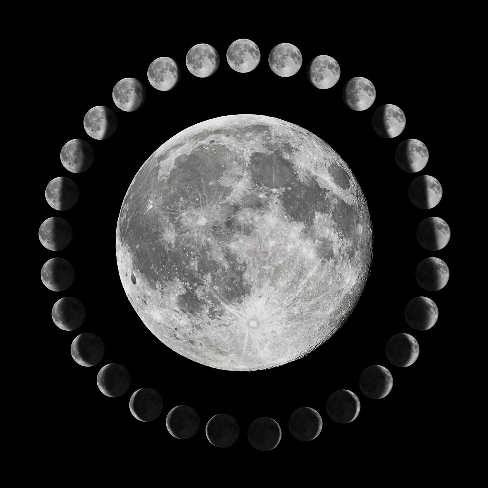 The phases of the Moon are the changing appearances of the Moon as seen from Earth. The moons phases happen because of its orbit around our planet and the varying angles of sunlight reflecting off its surface. As the Moon moves through its cycle different portions of its illuminated half are visible, creating distinct phases.