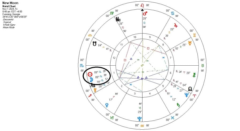 La Luna Nueva de Escorpio tendrá lugar el1 de noviembre de 2024 a 09 grados y 35 minutos. En mi zona horaria del Este, ocurrirá a las 8:48 h.