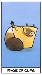 Mensaje: La Página de Copas representa la curiosidad, la exploración emocional y la inspiración creativa. Te invita a abrazar tu intuición y a abrirte a nuevas experiencias emocionales. Esta carta te anima a abordar la vida con un asombro infantil, a estar abierto a nuevas posibilidades. Trabaja para expresar tus emociones libremente mientras alimentas tu potencial creativo.