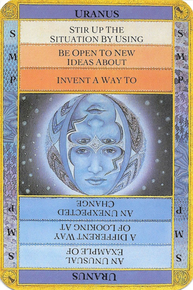 Mensaje:La carta de Urano indica cambio repentino, despertar, innovación y liberación. Su mensaje anima a liberarse de patrones anticuados, a pensar fuera de la caja y a abrazar tu singularidad. Urano te invita a esperar lo inesperado y a confiar en los avances que conducen a la auténtica transformación.