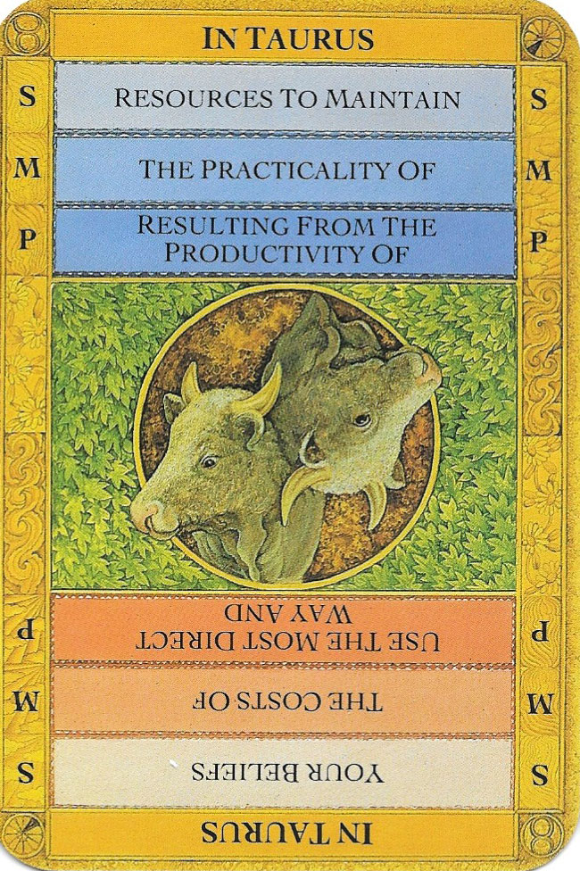 Mensaje: La carta de Tauro representa la estabilidad, la paciencia y la sensualidad. Su mensaje anima a enraizarse, apreciar los placeres sencillos de la vida y construir cimientos firmes. Tauro te invita a alimentar la seguridad, valorar la persistencia y cultivar la comodidad mediante esfuerzos pacientes y la conexión con el mundo físico.