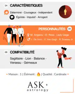 En tant que signe de feu, ils possèdent une grande énergie, qu’ils utilisent pour s’attaquer à n’importe quelle tâche ou défi. Ils sont enthousiastes et atteignent leurs objectifs plus rapidement que la plupart des gens. Si vous ne faites pas attention, ils vous laisseront tomber si vous ne suivez pas, non pas parce qu’ils s’en fichent, mais parce qu’ils regardent rarement en arrière.