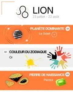 Le Lion est le cinquième signe du zodiaque, gouverné par le Soleil et régissant la cinquième maison. Le Lion symbolise la créativité, le leadership, la compétition et la performance.