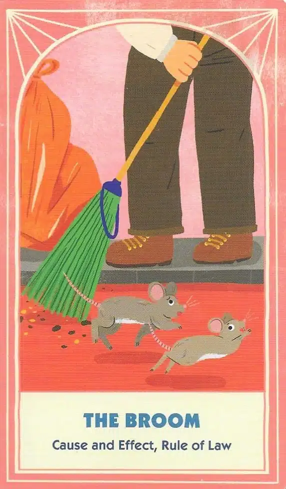 Message :Le balai vous rappelle que chaque action crée des vagues. Il représente la responsabilité, la justice et la loi universelle de cause à effet. Ce que vous balayez ou maintenez a de l’importance. Cette carte encourage l’intégrité et les choix réfléchis, car les conséquences – visibles ou invisibles – suivront toujours l’intention.