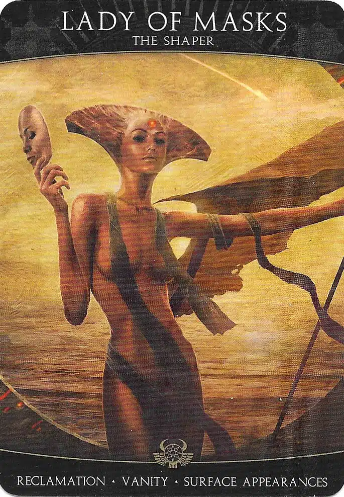 Message :La Dame des Masques donne des illusions, tentant de cacher ou de déformer la vérité. Restez prudent face aux apparences séduisantes et aux fausses impressions. Faites une pause, réfléchissez et discernez soigneusement avant d’agir. En restant ancré dans l’authenticité et en résistant aux séductions trompeuses, vous protégez votre intégrité et honorez votre vrai moi en permanence.