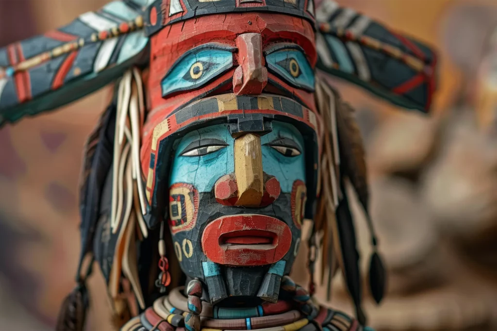 The masks worn during Kachina ceremonies form a symbolic link between the visible and invisible worlds, connecting the living with the dead and natural forces with spiritual energies.
