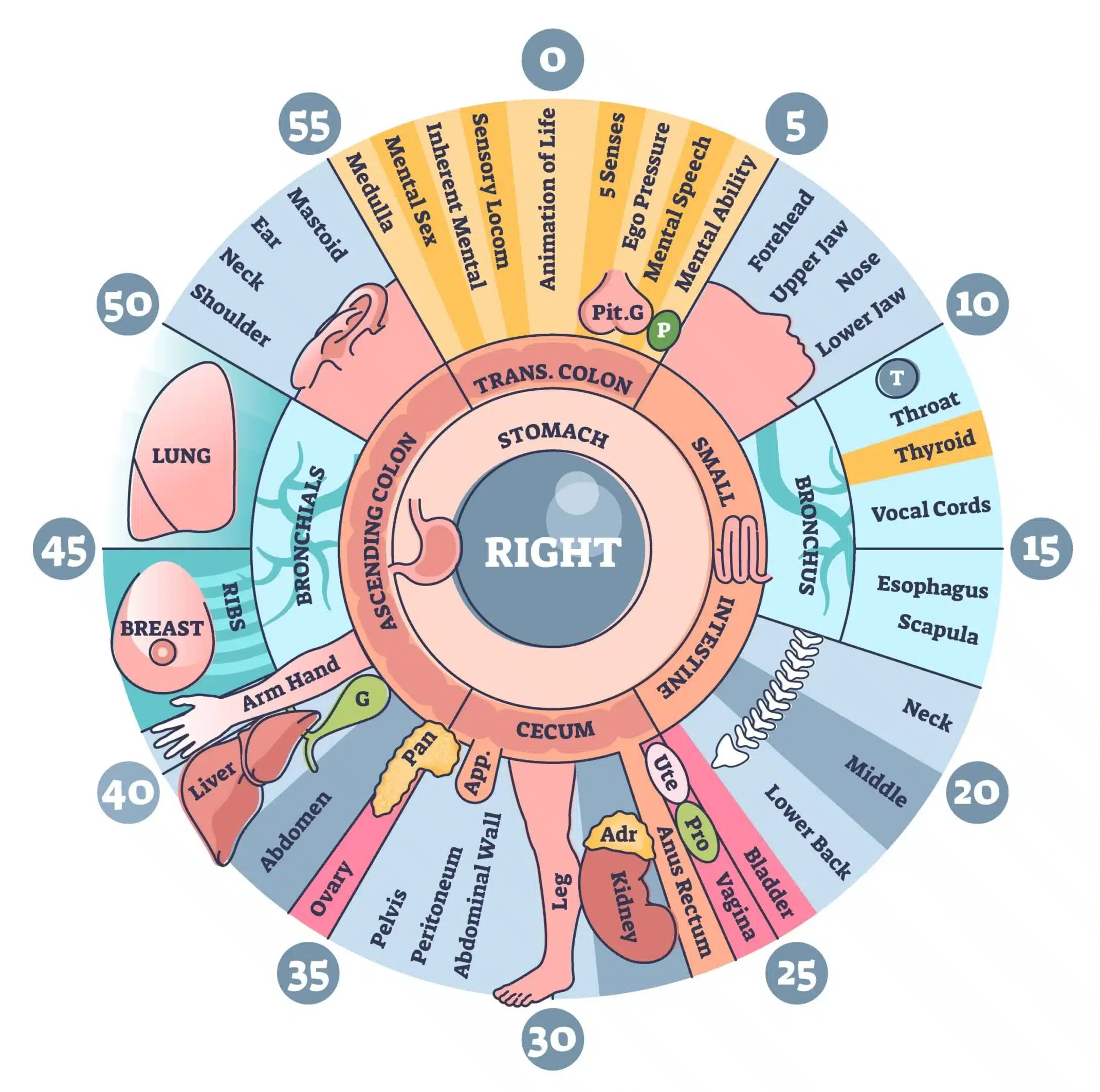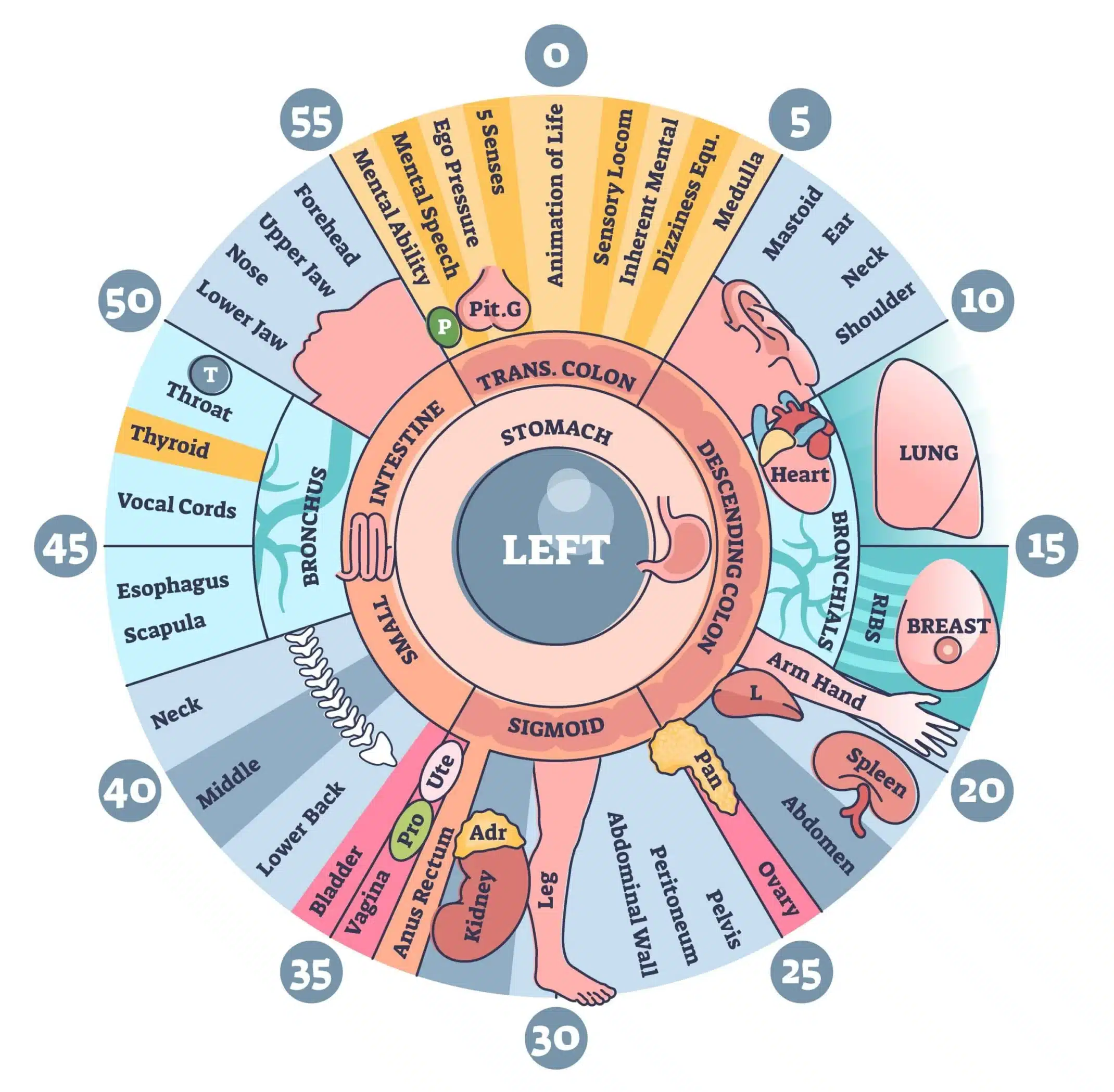 Lighter or darker spots: These can indicate areas where energy is either depleted or congested. A darker mark may show where the body has been stressed for a while. In contrast, a lighter patch might indicate sensitivity or weakness in that organ system.