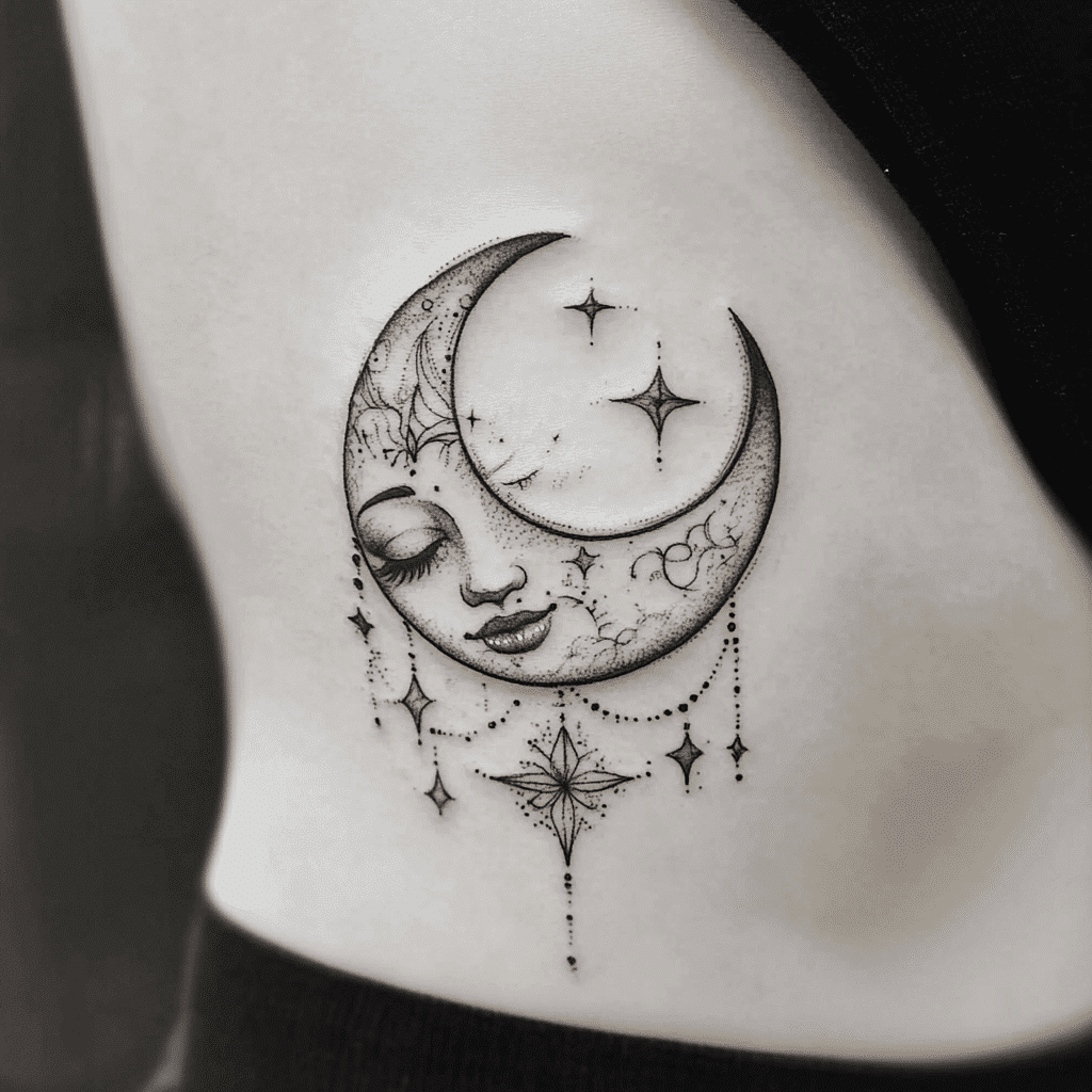 Getting a moon tattoo is far from trivial. As mentioned earlier, the moon symbolizes emotions, intuition, and feelings. It is also associated with the zodiac sign Cancer, a highly sensitive sign that is deeply introspective. Additionally, the moon’s cycle plays a daily role through the power of its radiance. It’s safe to say that a moon tattoo carries powerful cosmic meanings!
