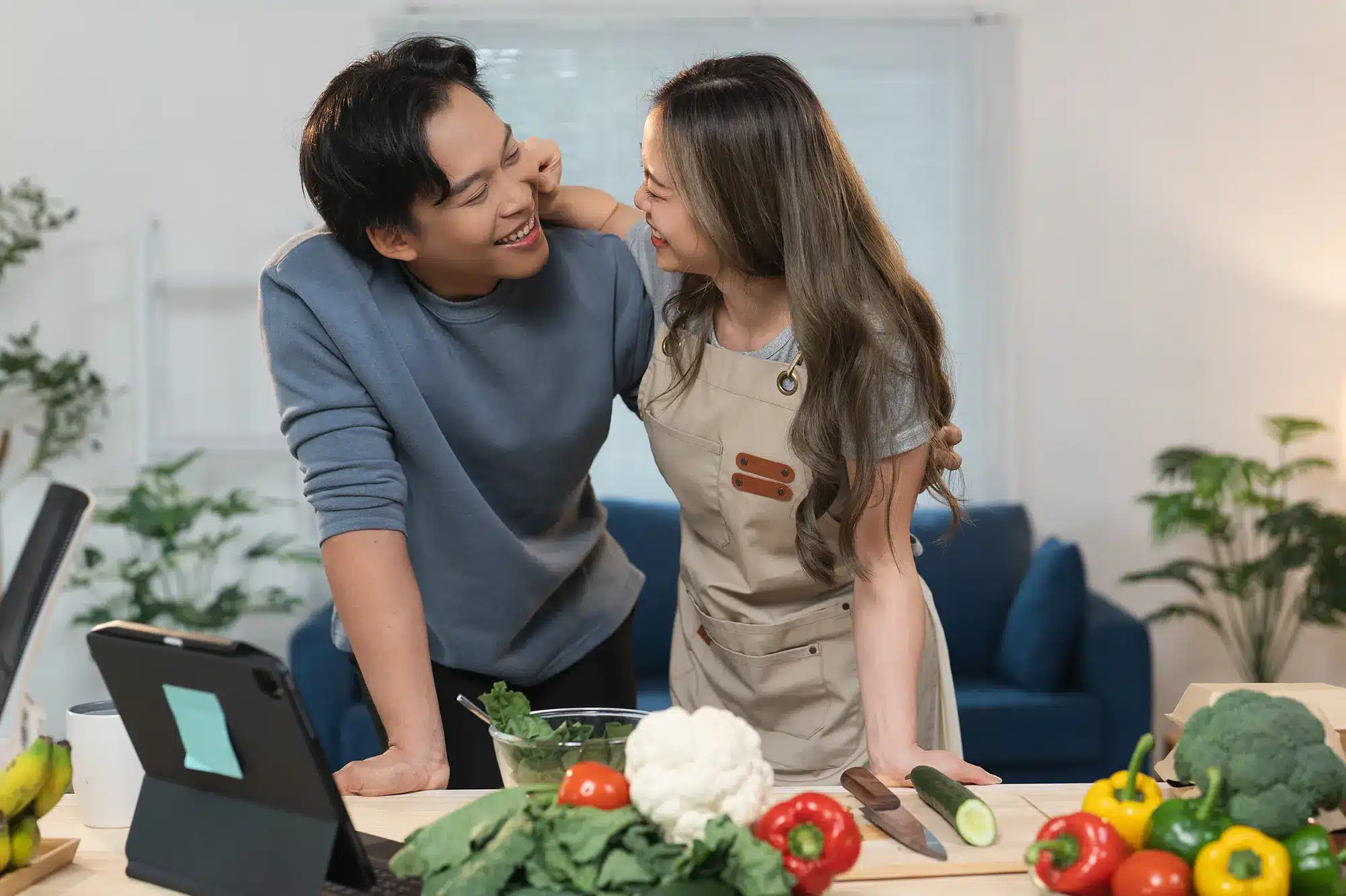Preparing a Meal Together: Preparing a meal and taking bites together is a healthy and enjoyable way to connect.