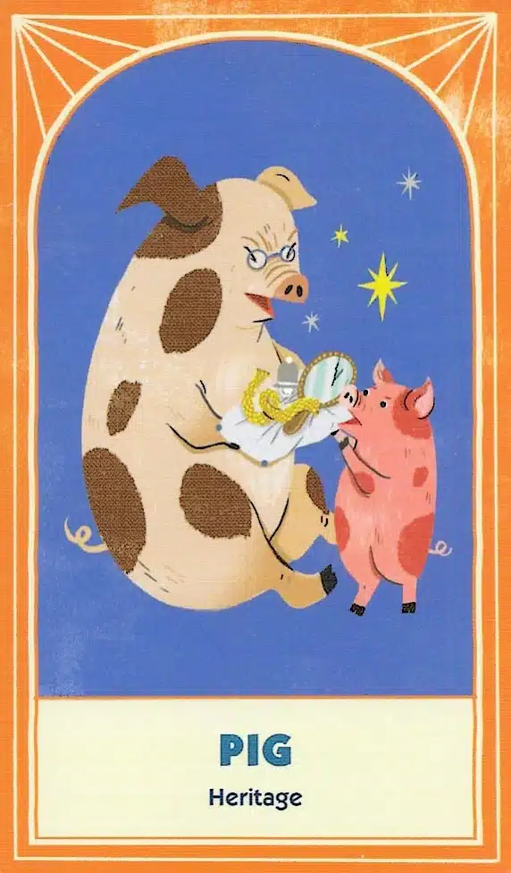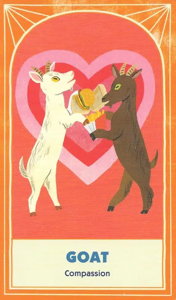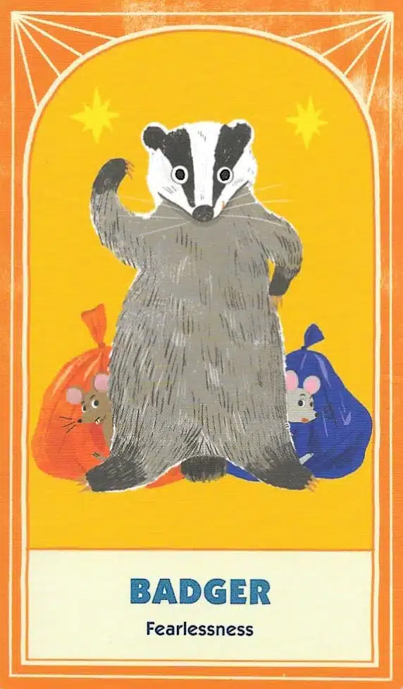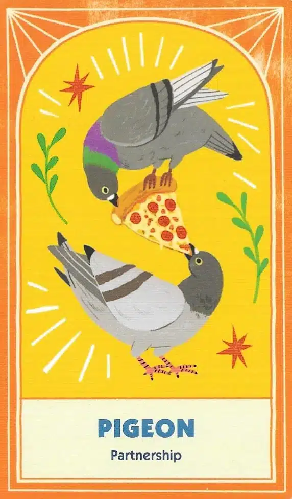 The artwork for this deck is fun and well-done. Alexander Schneider and Yeji Yun produced beautiful stylized representations of each animal and scene. As a result, you see the playfulness and thoughtfulness in each image. Helping the visual design are keywords on each card. Therefore, this is definitely one of the more creative oracle decks available.
