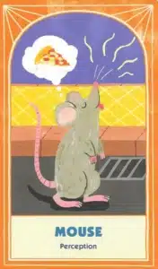 This deck comes with a very good color booklet that provides straightforward explanations for each card. The booklet includes sections: Introduction, The Spreads, The Environment Cards, and the Animal Cards. There are no reversed meanings to the cards, so you would need to determine a reversed meaning on your own. The Environment cards have a brief explanation and two questions. Meanwhile, each Animal card has two designs and interpretations. Thus, one version of the Mouse is Perception and the other is Athleticism.