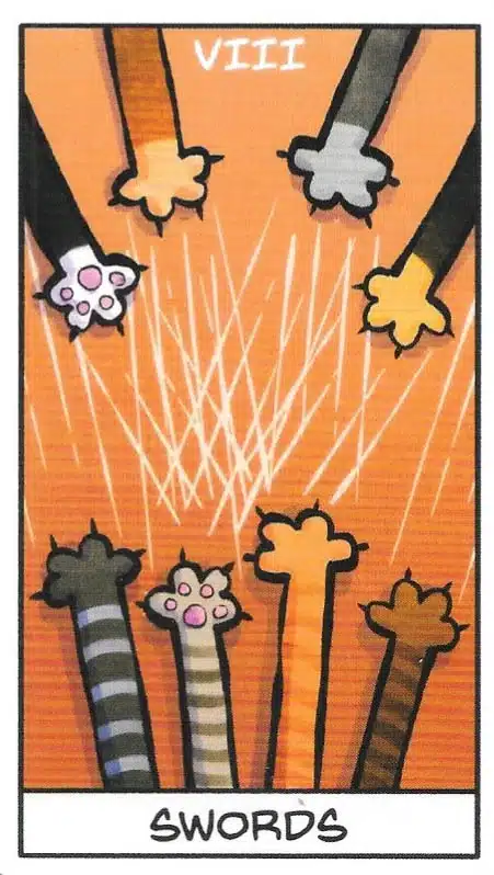 Message: The 8 of Swords represents feelings of confinement or restriction, often due to self-imposed limitations or fear. It urges you to recognize that the obstacles you face may not be as insurmountable as they seem. By shifting your perspective and taking decisive action, you can free yourself from the mental binds that hold you back.