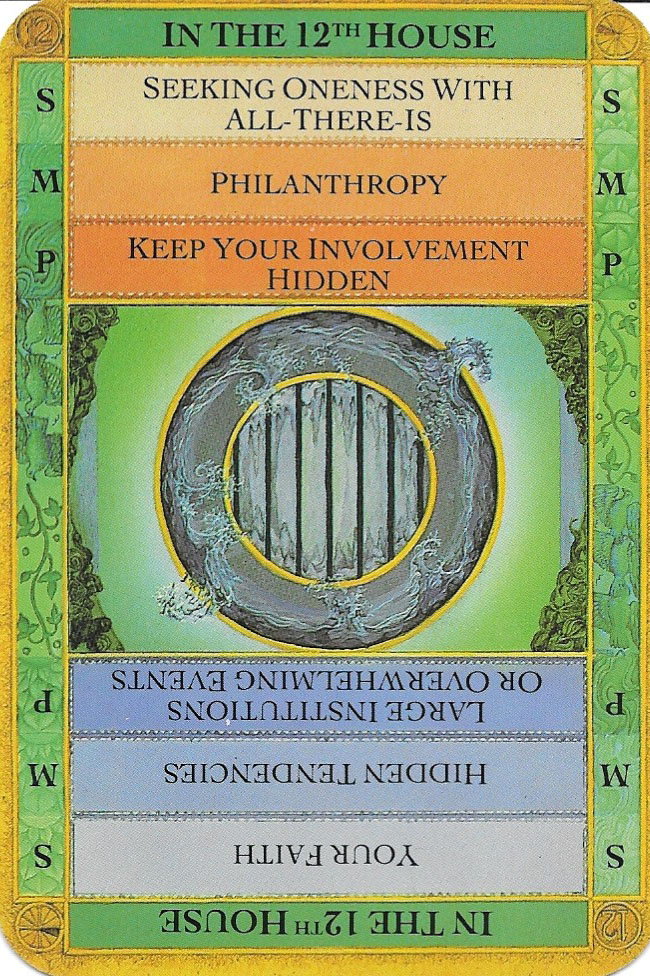 The 12th House card reveals hopes for spiritual connection, healing, and transcendence—alongside fears of loss, isolation, or the unknown. There’s a longing to release old pain or dissolve boundaries, yet a simultaneous fear of surrendering control. This energy invites quiet reflection, compassion, and trust in unseen support and inner strength.