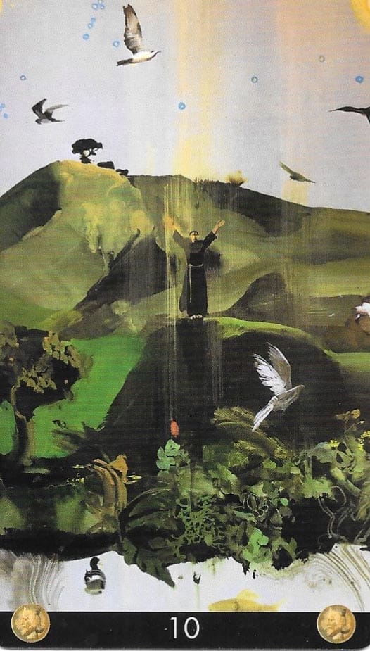Intense Persistent Water energy fuels your Primary Drive. Your Life Path energy operates best when bringing or experiencing transformation. You must learn “playfulness or lightness of heart” to manifest your best results. Your card this month is the Ten of Pentacles, and the keyword is “wealth.”