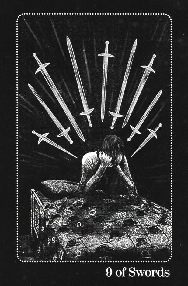 Action to Take: To use the 9 of Swords positively, practice a stress-relief technique to manage anxiety. Start a nightly journaling routine where you write down your worries and solutions before bed. This process helps clear your mind, identify actionable steps, and promotes a more restful sleep, easing your mental burden.