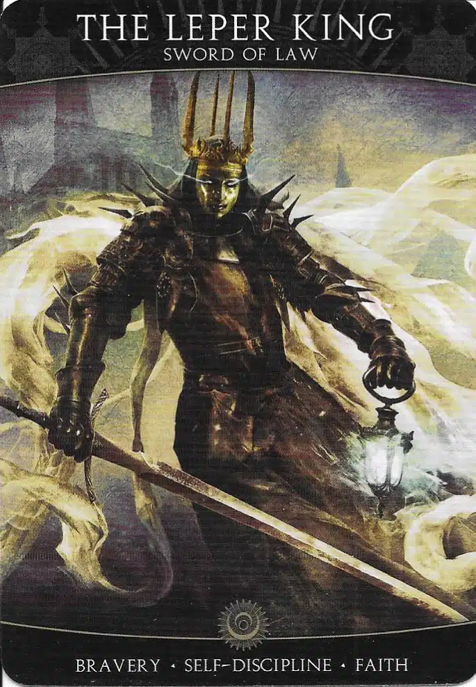 The Leper King emphasizes courage, disciplined action, and steadfast faith to navigate challenges. Therefore, confront fears with honesty, maintain focus on long-term goals, and trust your inner guidance. By exercising restraint, persevering through difficulties, and acting with integrity, you cultivate resilience. Align with your higher purpose and progress confidently along your path.