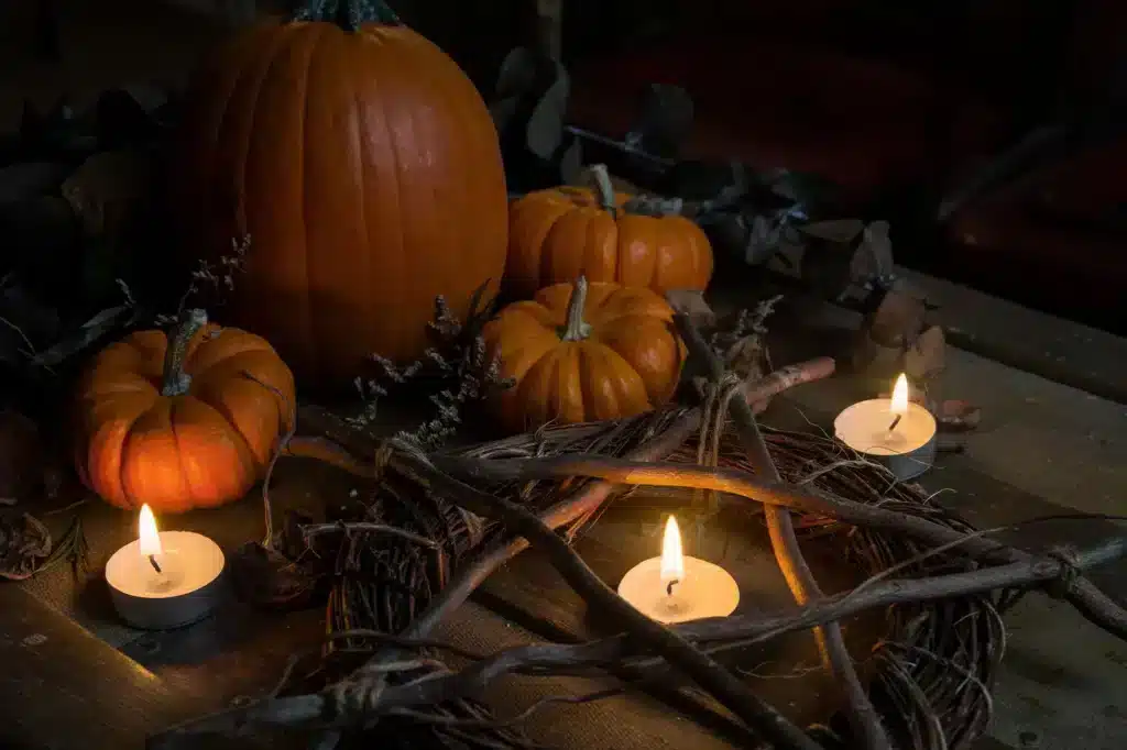 Also, use autumnal colors like orange, red, and black and seasonal decorations like pumpkins, dried leaves, and acorns. Incorporate candles to represent the guiding light and warmth amidst the darkness.