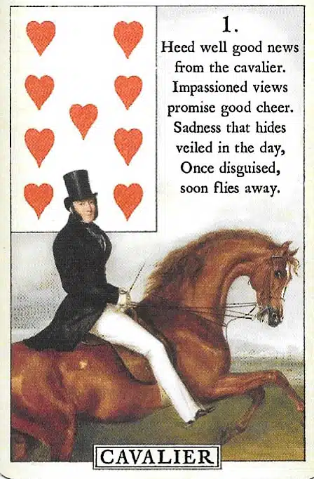 Message: The Cavalier card in Lenormand represents news, messages, and movement. Moreover, it signals swift action, arrival, or important updates. In relationships, it highlights communication and new developments. Additionally, it encourages responsiveness, curiosity, and attentiveness. As a result, the Cavalier inspires momentum, connection, and timely progress.