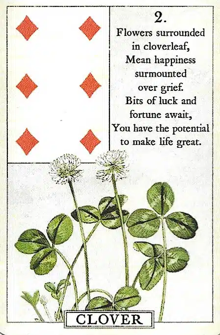 Message: The Clover card in Lenormand represents luck, opportunity, and short-term gains. Also, it signals unexpected surprises or positive twists. In relationships, it highlights playful moments and spontaneous joy. Additionally, it encourages optimism, openness, and flexibility. Therefore, the Clover card inspires hope, serendipity, and lighthearted progress.