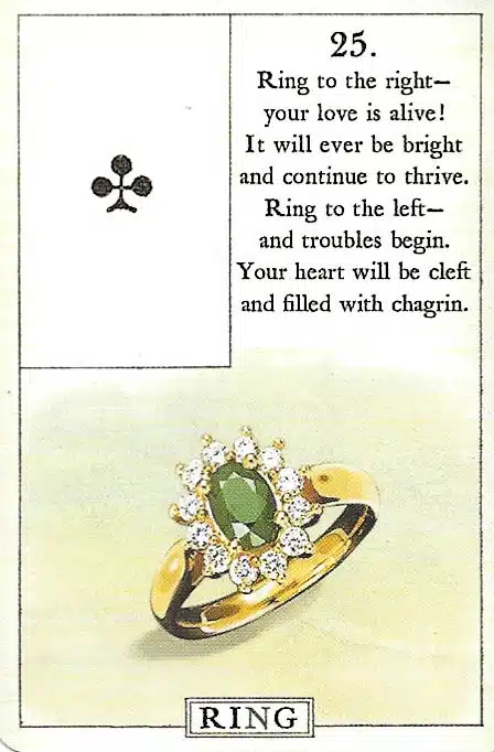 Message: The Ring card in Lenormand represents commitments, agreements, and long-term partnerships. Moreover, it signals contracts, promises, or lasting bonds. In relationships, it highlights loyalty, marriage, or enduring connections. Over and above that, it encourages dedication, trust, and follow-through. The Ring card emphasizes stability, reliability, and continuity.