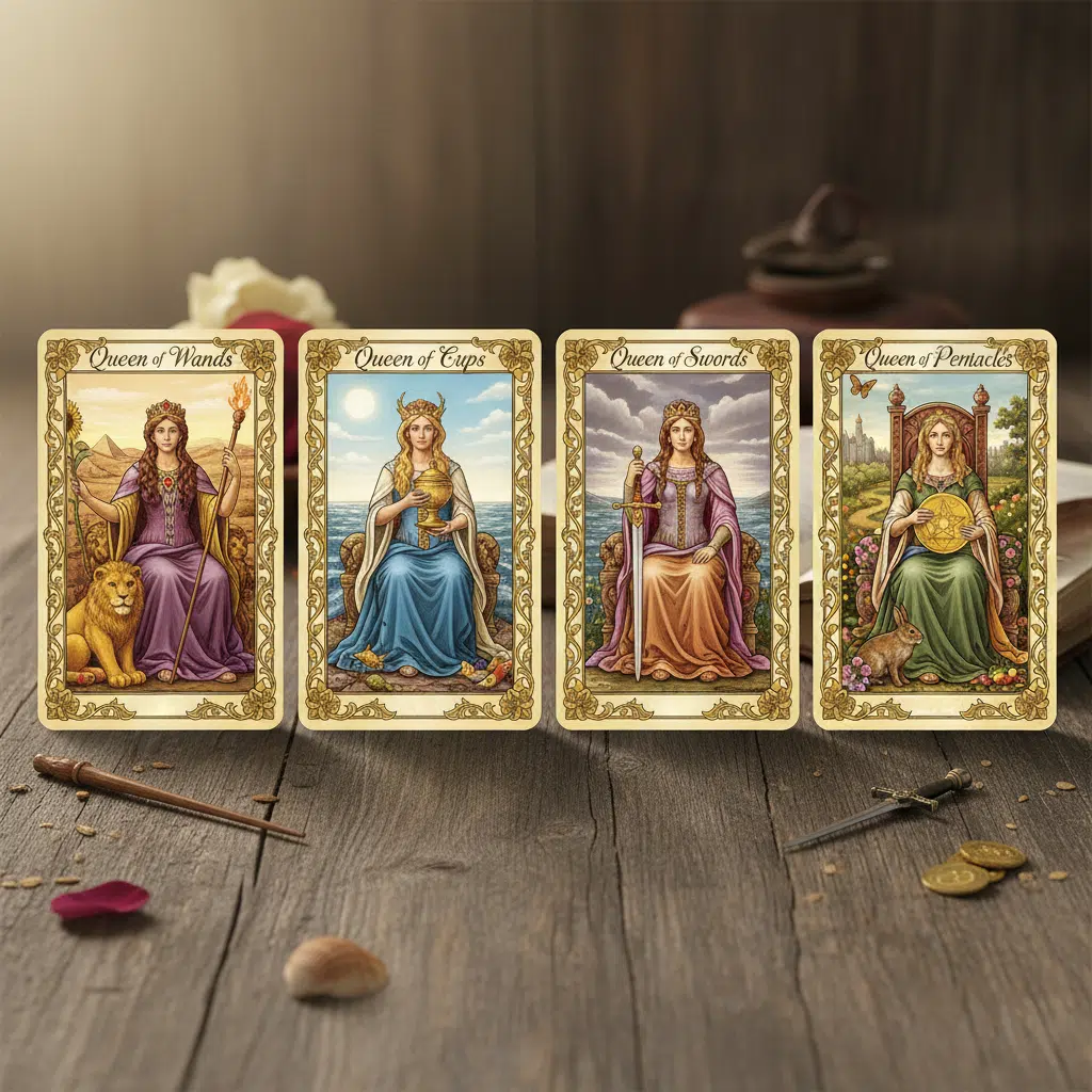 The Empress is the “Queen of the Queens” because she embodies the full spectrum of feminine power. Each Queen in the Minor Arcana rules her own realm, yet the Empress integrates them all. She expresses emotion, thought, stability, and passion in perfect harmony. As the archetypal mother, she represents creativity, love, and abundance. Her presence unites body, mind, heart, and spirit, making her the ultimate symbol of wholeness and nurturing authority.